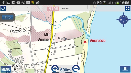 - Das Kartenmaterial ist durchgängig für ganz Korsika in einer Karte mit dem Namen "Korsika" am Handy verfügbar.