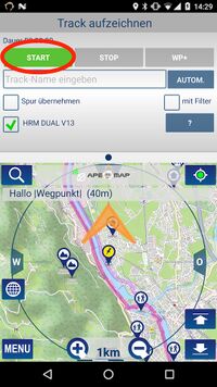 Sobald eine Trackaufzeichnung gestartet wird und der Gurt Herzfrequenz-Werte liefert, werden diese automatisch mit aufgezeichnet und bei den Statistik-Informationen angezeigt.